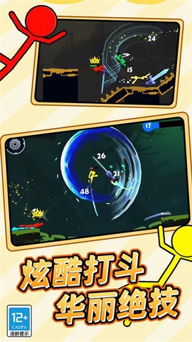 玩家将选择自己心仪的火柴人角色,投入到热烈的战斗中,目标是击败更多的敌手,夺取冠军的荣誉。火柴人作为许多玩家心中的经典元素,能唤起无限的怀旧。游戏不仅保持了这一经典主题,还延续了火柴人特有的刺激动作体验。角色种类丰富多样,各种酷炫技巧与华丽动作的结合,使得游戏的可玩性大大增强。