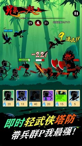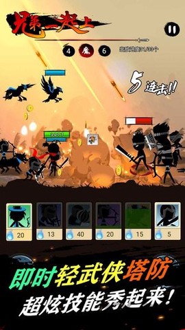 2、将塔防与即时战斗完美结合,兄弟们并肩作战,抵挡敌对势力的激烈攻势,热血沸腾时刻尽在掌握!