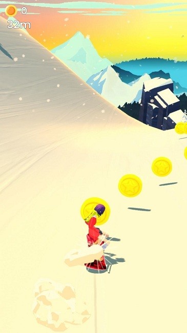 玩家通过触摸屏幕来控制滑雪板的移动方向和速度。在游戏中有多个赛道可供选择,每个赛道都有独特的障碍和道具。玩家需要躲避障碍物,收集道具,并尽可能快地完成赛道。还可以进行各种花样动作来获得额外的分数。
