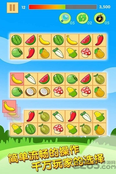 《开心水果连连看》游戏画面精美,操作简单易上手。游戏玩法新颖,具有很高的可玩性,能有效地锻炼玩家的反应能力和观察力。关卡设计丰富多样,每一关都能给玩家带来新的挑战和乐趣。而且,游戏难度适中,不论是初学者还是老玩家都能找到自己的游戏乐趣。