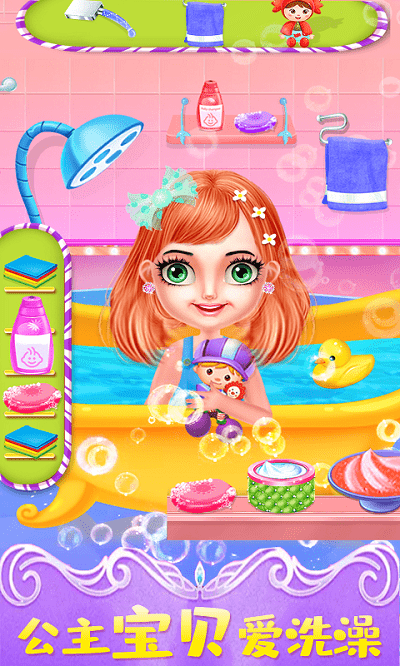 2.进入洗澡场景:孩子可以在游戏中与宝宝公主一起进入温暖的洗澡场景。