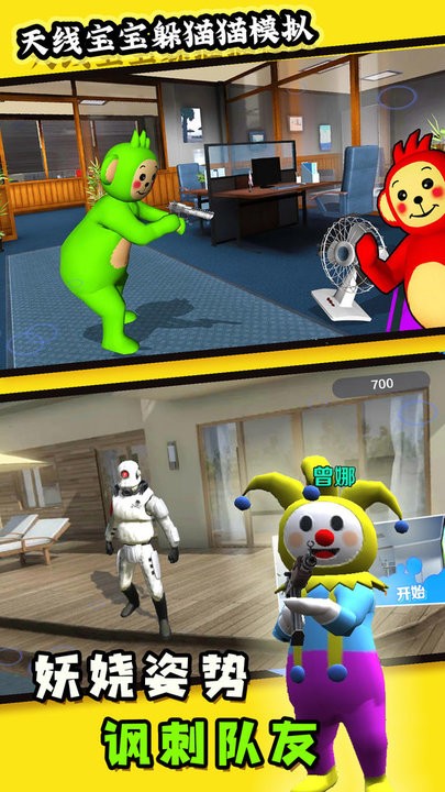 2. 多样的躲藏地点:游戏场景设置了丰富多样的躲藏地点,包括天线宝宝的家、花园、森林等,玩家可以根据情况选择最合适的地方躲避猫咪。