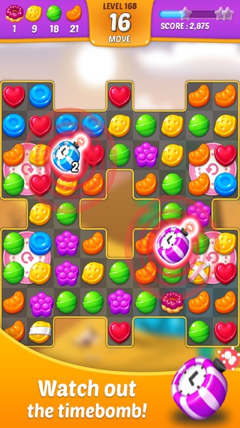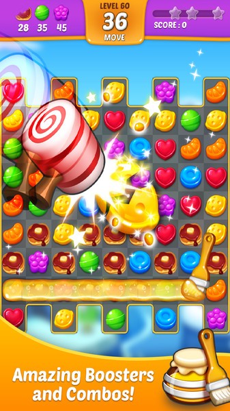 3. 强大道具辅助:游戏中特色道具众多,例如糖果炸弹、彩虹糖果等,可以帮助玩家更轻松地完成关卡。