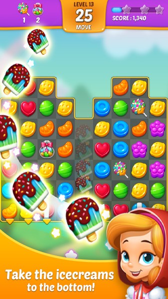 1. 可爱糖果画面:游戏中的糖果造型可爱精致,色彩丰富明亮,令人愉悦。