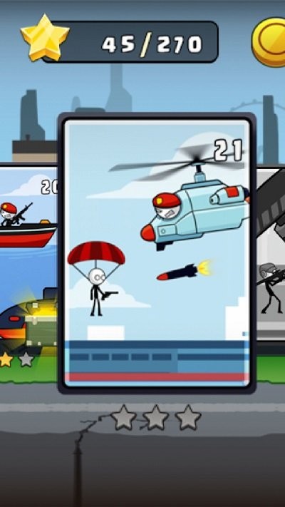 火柴人特工大冒险的主要玩法是完成关卡内的任务。每个关卡都有独特的目标和挑战,你需要运用特工技能和智慧来完成任务。游戏提供多种操作方式,让你可以自由选择使用手势还是虚拟按钮进行操作。通过完成任务,你可以解锁新的关卡和特工装备,提升特工能力。