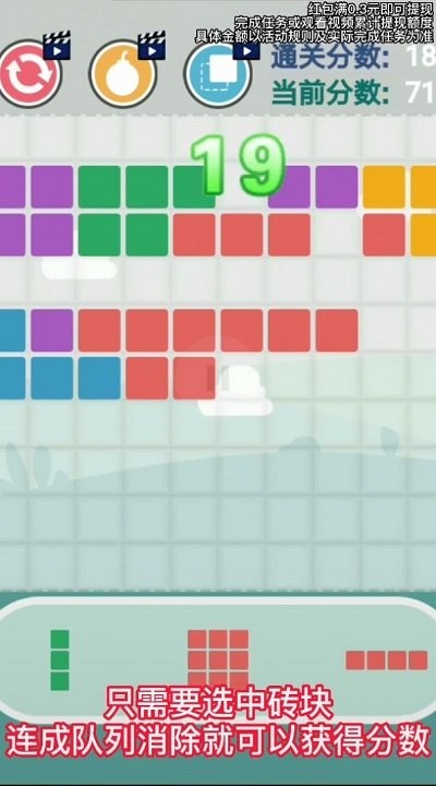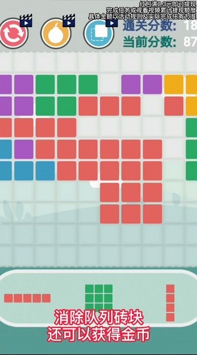 4.奖励系统:完成每一局游戏后,玩家可以获得金币奖励,用以解锁更多的砖块造型。