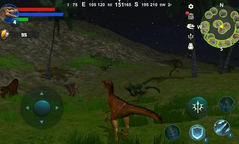 1、逼真的生存模拟让玩家必须通过捕食其他恐龙和寻找水源来维持自身的健康和精力,随时保持警惕。
