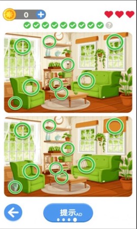 1、游戏画面设计清新而简约,色彩搭配鲜明,能够帮助玩家更快地捕捉到不同之处。