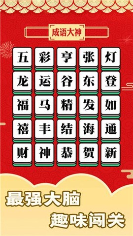 成语大神是一款颇具挑战性的闯关游戏,结合了多种模式和丰富的玩法,期待着你来一一尝试。随着关卡的深入,难度也逐渐增加,想要完美完成所有挑战可不是一件容易的事!这款游戏不仅测试你的成语储备量,还充满了娱乐性和知识性,让每位玩家在轻松的氛围中获得成长。