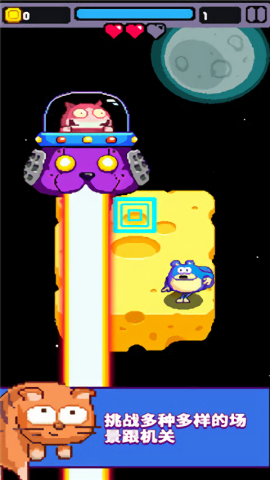 2、独特的冒险关卡里充满了各种挑战,需要你灵活应对。大胆地上下左右移动,绝对不要让任何攻击碰到你!这是挑衅极限的时候,看看你能坚持多久!