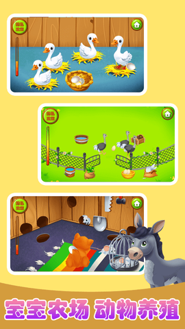小朋友们,你们准备好与可爱的动物们互动了吗?在宝宝欢乐农场中,孩子们可以化身为小小农场主,照顾一群活泼的动物们。游戏设计简洁直观,适合小朋友们操作。这里的每一次互动,都是对孩子反应能力与逻辑思维的锻炼,寓教于乐,让学习变得轻松有趣!