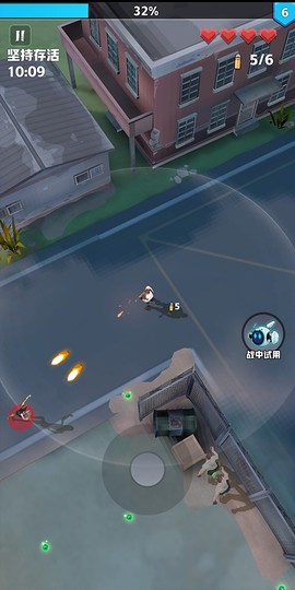 3、武器升级后,就可以进入战斗模式。滑动屏幕操控角色,快速躲避僵尸的攻击。灵活的操作是生存的关键。