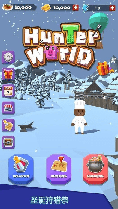 这是一个焕然一新的版本,精心结合了当前的圣诞节庆活动。你将扮演一名冬日圣诞的猎手,探索各个不同的地图资源,捕猎丰富的动物。捕获的猎物不仅可以制成美食,还有不少稀有材料能兑换成金币供你收藏和使用。