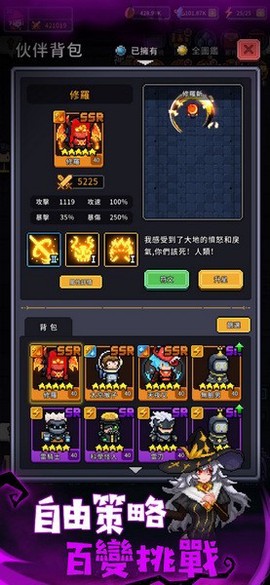 1、以丰富的职业选择形态,允许你尝试多种阵容以推进关卡。每个关卡都挑战重重,敌人可谓凶险异常,疏忽大意就可能落败。