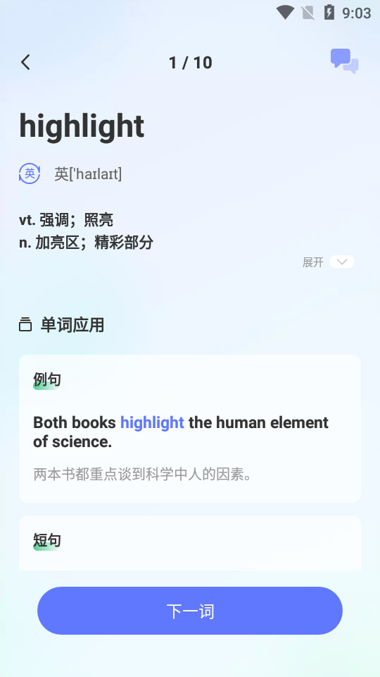 3. 智能记忆:通过智能记忆算法,应用会根据用户的学习情况自动调整单词出现的频率,加强记忆效果。