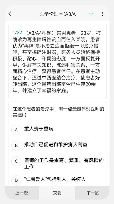 《主治医师原题库》手机应用是备考主治医师考试的首选工具,它不仅丰富了题库资源,还提供了智能答题模式和详细解析,方便用户进行有针对性的学习和提升。同时,应用的个性化学习计划和考试经验分享也为用户提供了更多辅助资源。无论是医学学生还是已经从业的医生,都可借助该应用快速提升自己的考试水平。快来下载体验吧!