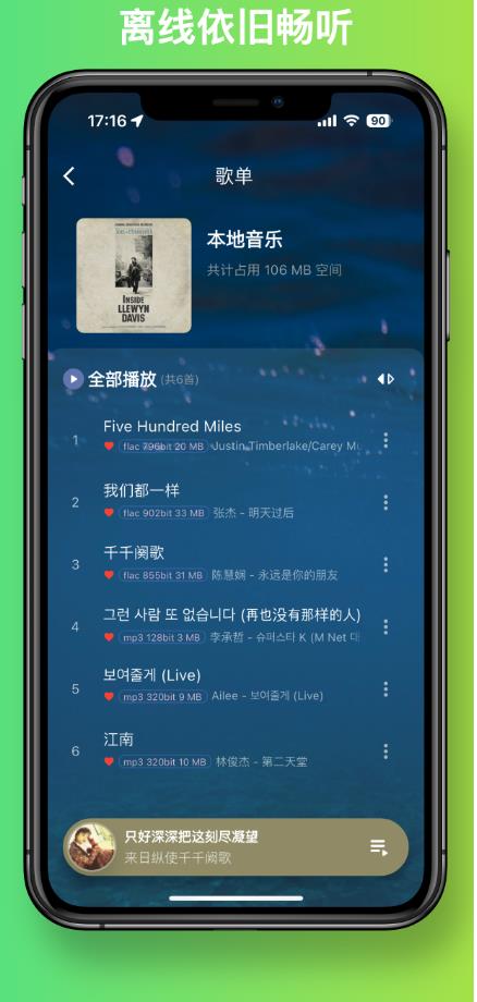 4. 离线收听:音流还支持离线收听功能,您可以将喜爱的歌曲下载到本地,无需网络即可随时欣赏,无论您身在何处。