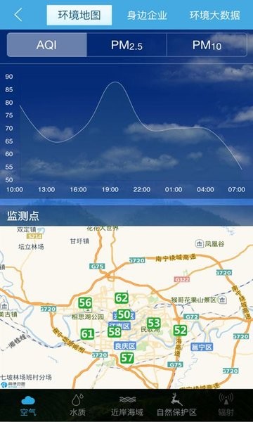 1. 环境指标实时监测:应用利用定位功能,根据用户所在位置提供实时环境指标监测,如空气质量、水质情况等。用户可以及时了解周围环境状况。