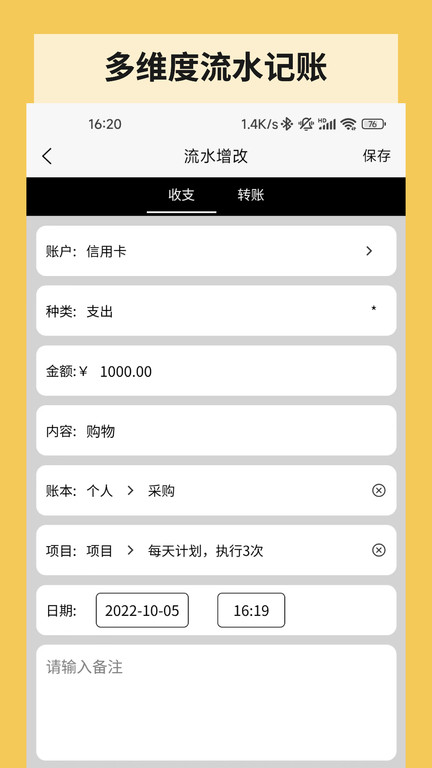 1. 记账:您只需在记账页面记录收入和支出,并选择相应的分类。您还可以添加备注、设置账户,使您的记账更加便捷和准确。