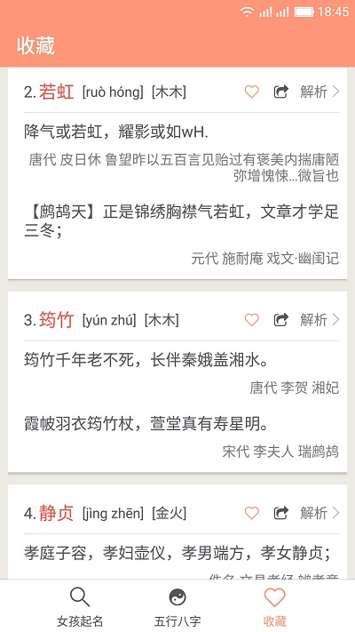 女孩起名取名字应用使用简单直观。用户打开应用后,可以通过以下几种方式来寻找适合的名字: